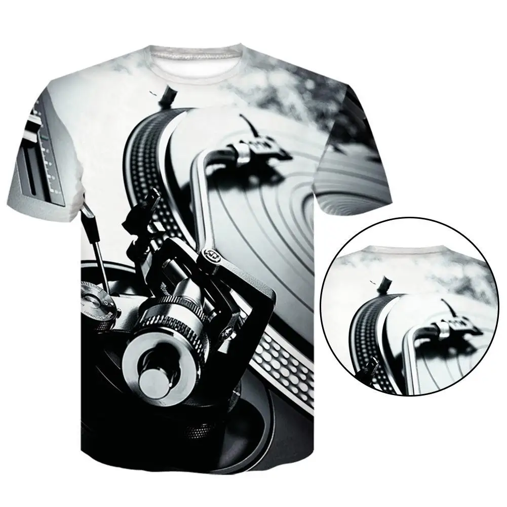 Для мужчин 3D техника Turntable диджеев аудио принт короткий рукав Футболка с круглым вырезом