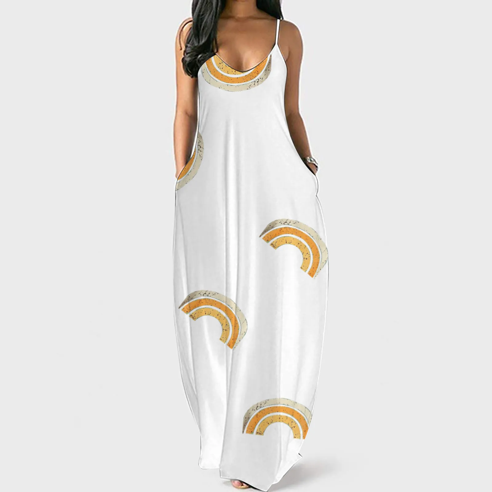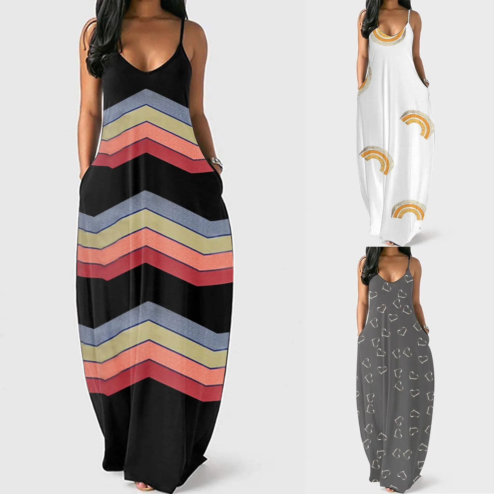 Женское модное платье большого размера с принтом, сексуальное длинное платье с глубоким v-образным вырезом на бретельках, Повседневное платье