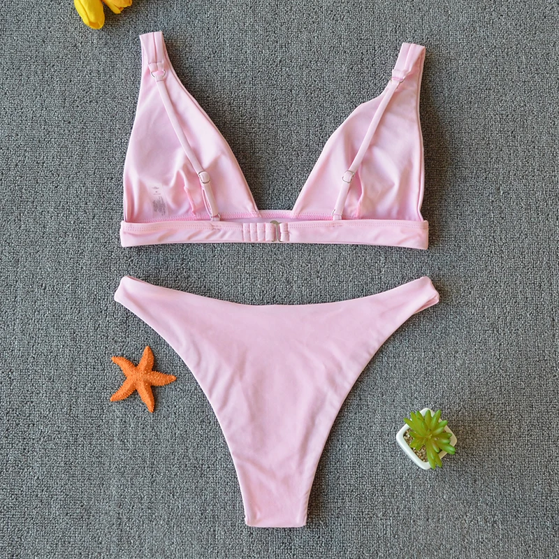 Пикантное женское бикини JRODIM 2021 с глубоким V-образным вырезом, однотонный микро купальник с пуш-ап, пляжный бразильский купальник из двух частей с высокой талией, купальный костюм