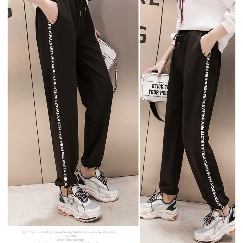 Осенние шаровары женские спортивные штаны со средней талией в уличн...