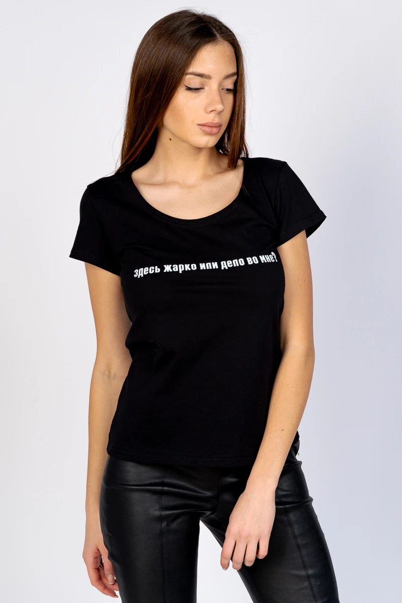Согласны ли вы с мнением, что черный цвет – это нестареющая классика? Наверняка, у каждой девушки в гардеробе есть темные штаны, платье, блузка и шорты. Если же вы не относите себя к числу таких женщин, то самое время купить женскую футболку черного цвета с оригинальной набивкой в интернет-магазине Твой Фасон.Модель изготовлена из 100% хлопка, а поэтому приятно прилегает к телу, находясь в ней кожа «дышит», а это необходимое условие при носке в жаркое время года. Футболка идеально сочетается с темными и синими джинсами. Большая горловина сексуально преподнесет зону декольте, украсить ее можно небольшой подвеской. А оригинальная набивка позволит вам оставаться в тренде, и немного пофлиртовать.