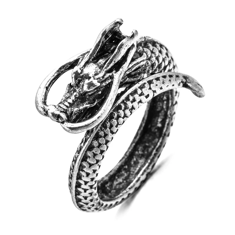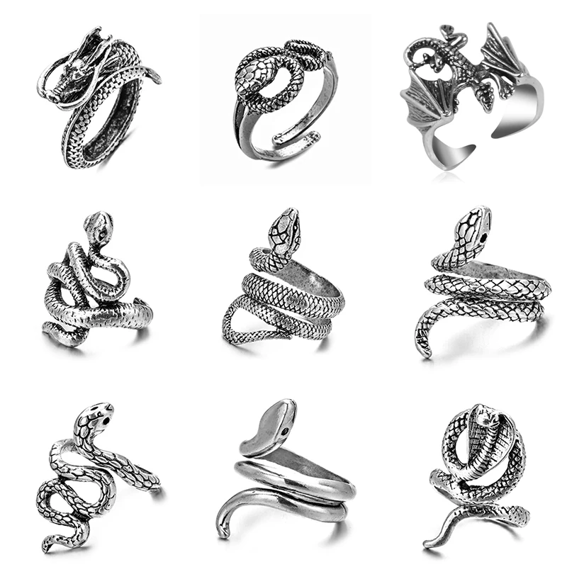 Кольцо змея в стиле ретро для мужчин и женщин, увеличенное регулируемое кольцо в античном стиле, регулируемое кольцо серебряного цвета с драконом, Подарочная бижутерия, 26 видов