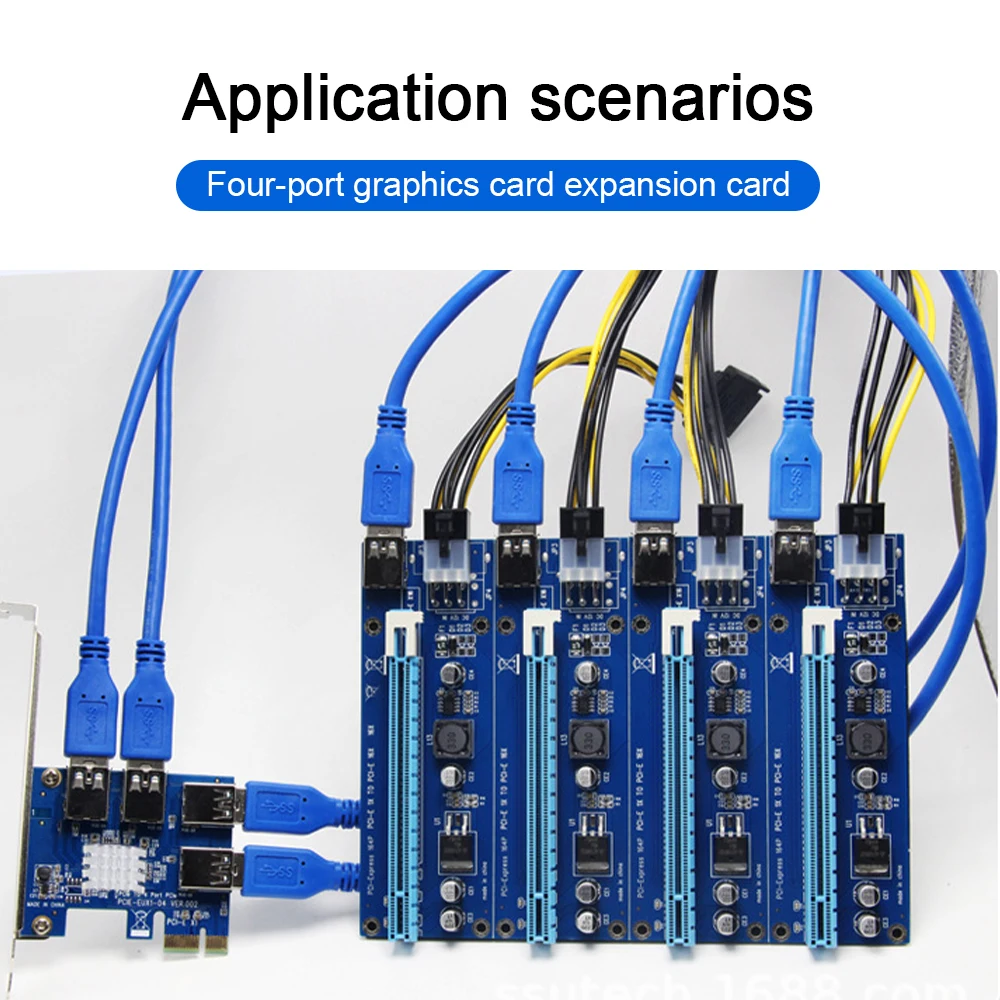 PCI-E-PCI-E адаптер 1 поворот 4 PCI-Express слот 1x до 16x USB 3,0 карта расширения для майнинга PCIe преобразователь для майнинга BTC