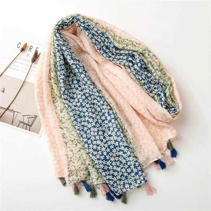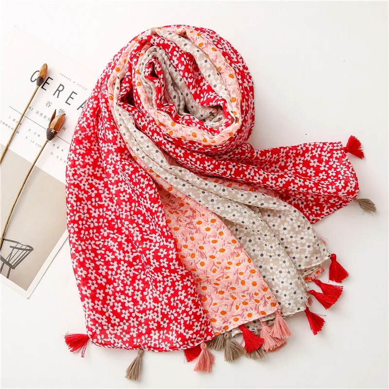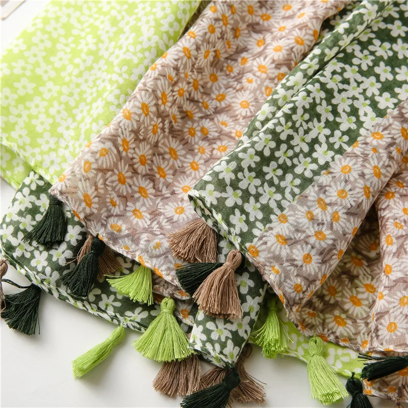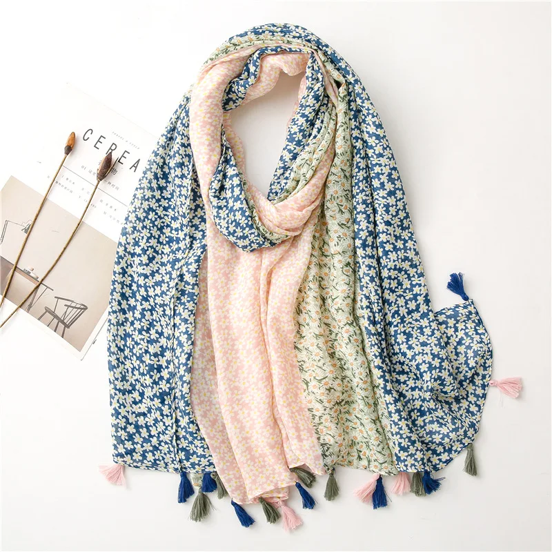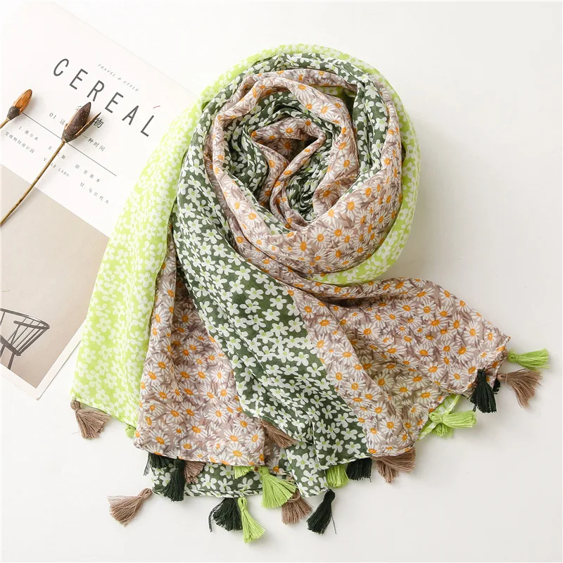 Шарф VISROVER из вискозы с принтом в виде маленького цветка, летний...
