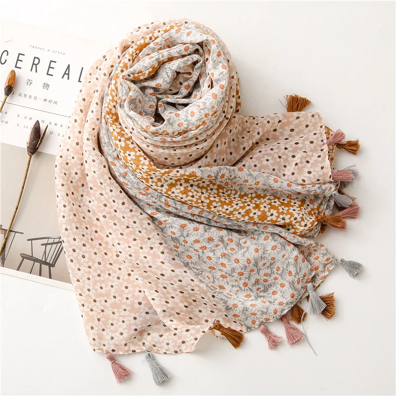 Модный новый Омбре узор в горошек Цветочная кисточка шаль из вискозы шарф леди высокое качество обертывание пашмины палантин Bufandas мусульманский хиджаб Snood