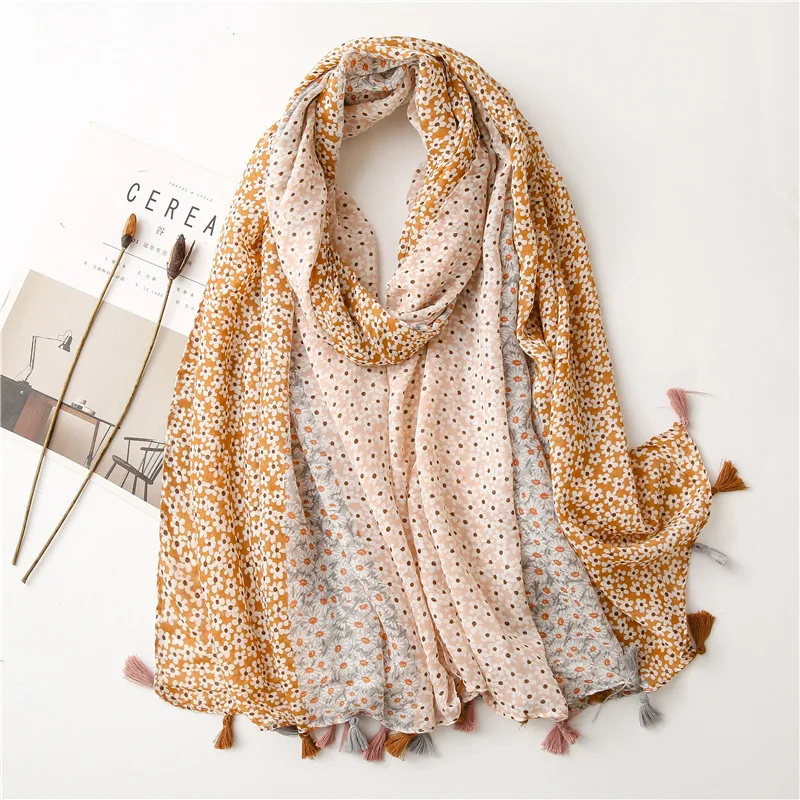 Новые модные эффектом деграде (переход от темного к с узором в горошек, с цветочным принтом и кисточками шаль из вискозы шарф леди высокого качества пашмины палантин Bufandas мусульманский хиджаб шарф-снуд