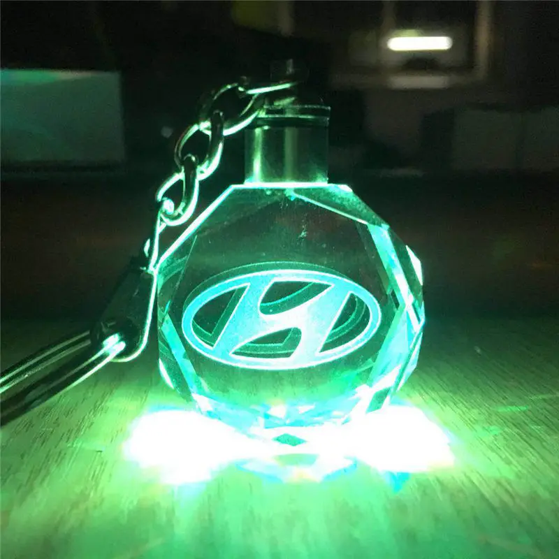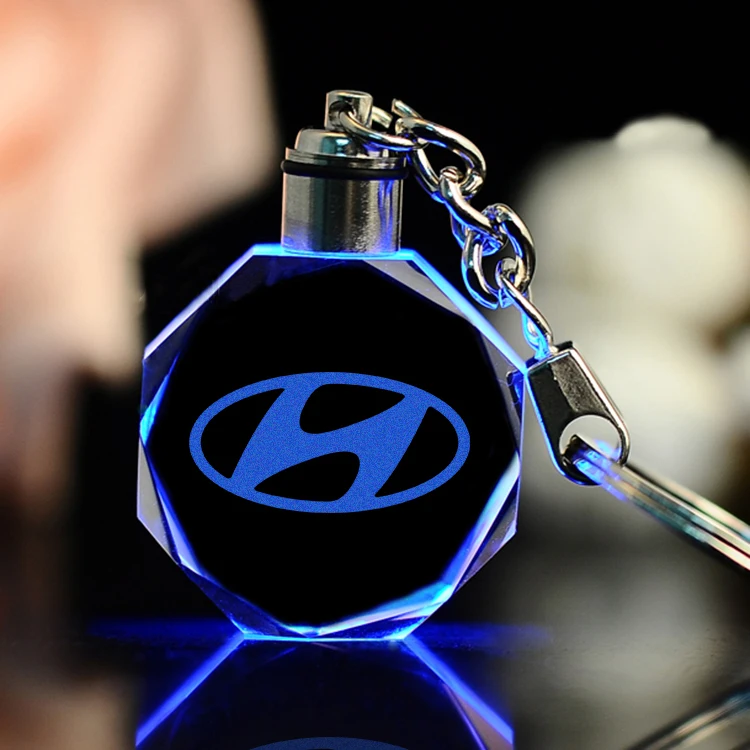 Брелок для ключей, модный хрустальный стеклянный автомобильный Стайлинг, цветные огни, значок Hyundai, подвеска, мужской деловой подарок, автомобильные аксессуары, кольцо для ключей