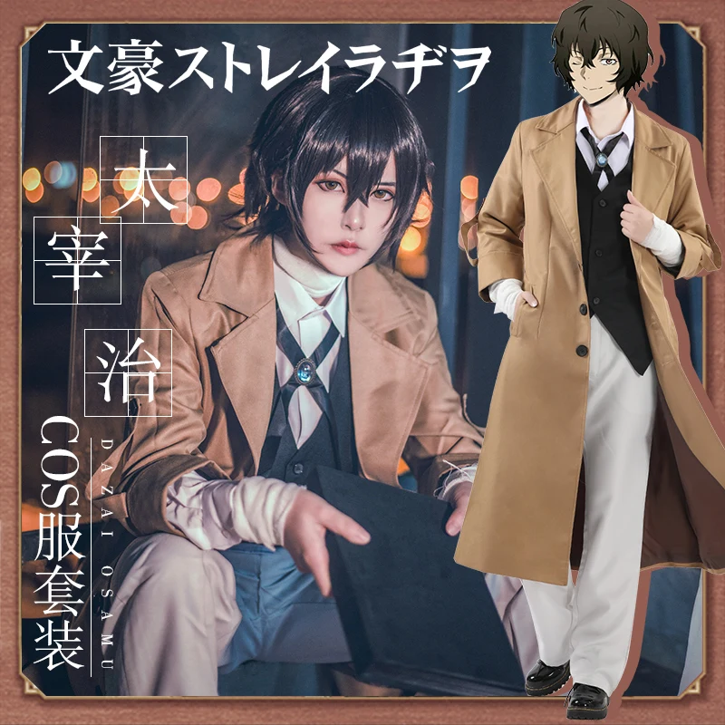 Костюм для косплея Harujuku, из японского аниме, Бунго, бродячих псов, дазай Осаму, костюм для косплея, пальто, рубашка, жилет, галстук, брюки, пояс