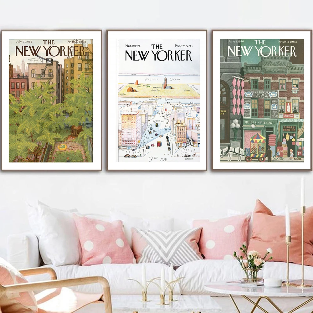 Обложка журнала New Yorker, Постер с абстрактным изображением мира, винтажный принт, Настенная картина в стиле ретро, Картина на холсте, домашний декор