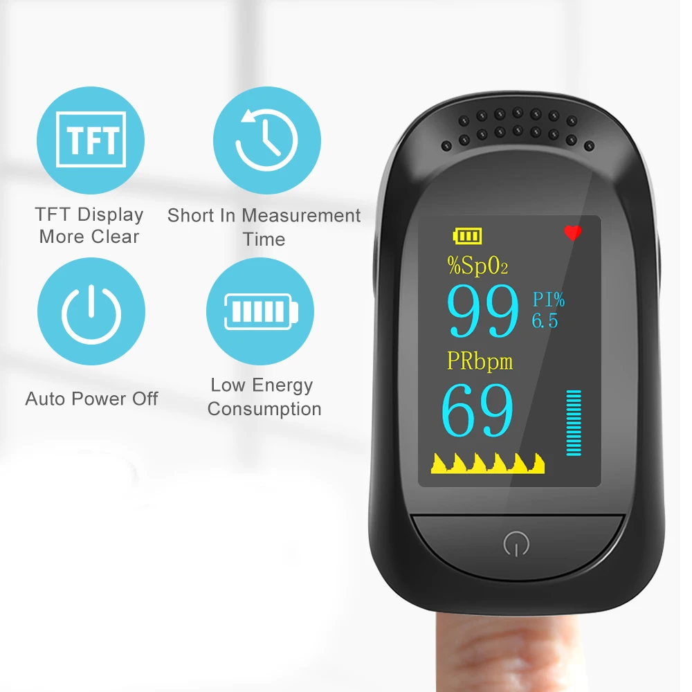 Особенности:Пульсоксиметр на пальцах для простой ежедневной проверки, может использоваться в семьях, школе, учреждениях социального обеспечения, общинных центрах и т. д.Предназначено для измерения насыщения крови кислородом и частоты пульса взрослых или детей, и вы можете использовать его для измерения до или после занятий спортом.Оснащен четким TFT-экраном, показывающим значение SpO2, частоту пульса (PR), импульсную волну и т. д.Прост в использовании, откройте зонд, затем вставьте один палец в зонд, включите оксиметр, примерно через несколько секунд результат измерения можно считывать прямо с экрана.Питание от 2 батареек AAA (не входят в комплект), Пульсоксиметр автоматически отключится через 8s, если нет сигнала пальца.Компактный размер и легкий вес, со шнурком, удобно носить с собой и использовать в любое время в любом месте.Характеристики:Цвет: белый и синийТип дисплея: TFT-дисплейЗаявленная точность SpO2: 70%-99%, ± 2% на сцене 80%-99%, ± 3% на сцене 70%-79%Заявленная точность PR: 30-240 уд/мин, ± 1 уд/минИсточник питания: 2 * батарейки типа "ААА" (не входит в комплект)Рабочая температура: 5 ℃-40 ℃Влажность при эксплуатации: 15%-80%Атмосферное давление: 70 кПа-106 кПаРазмер изделия: 6*3,2*3,2 см/2,4*1,3 * дюймаВес изделия: 25 г/0,88 унцииПосылка: 7*7*4 см/2,8*2,8 * дюймаВес посылка: 41 г/1,4 унцииУпаковочный лист:1 * оксиметр1 шнурок1 * Руководство пользователя (на английском языке)