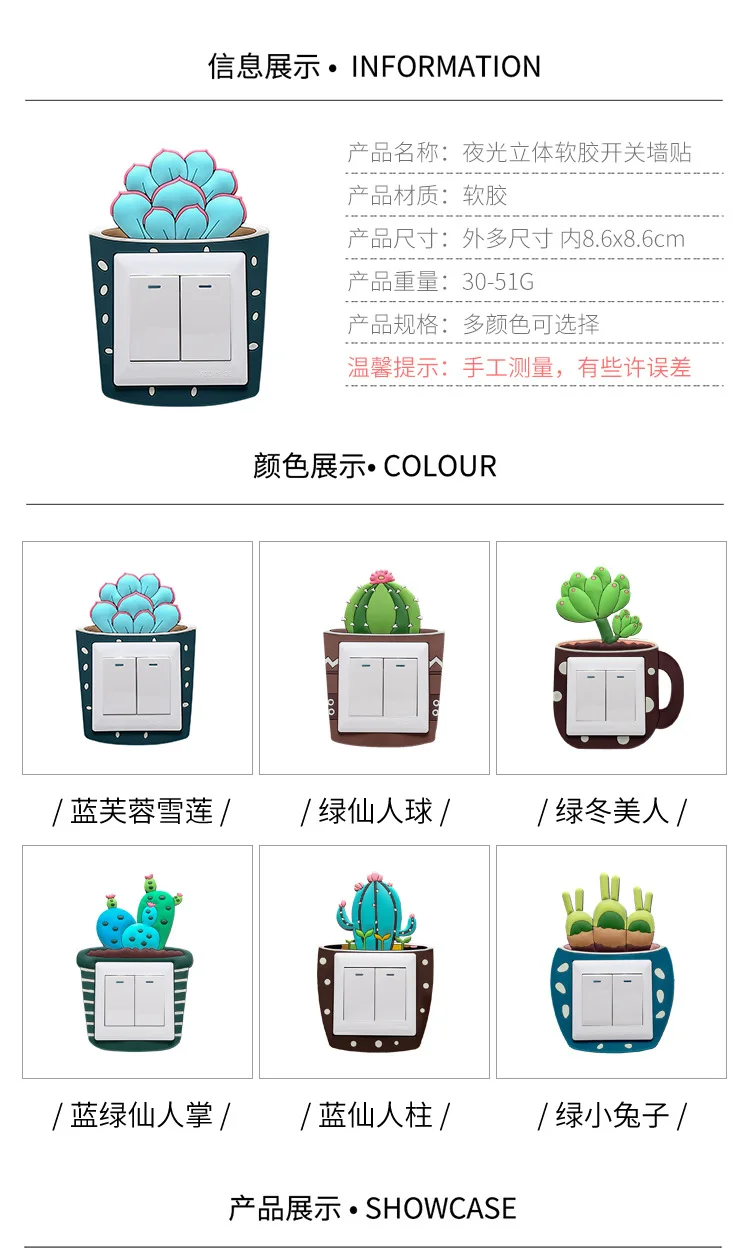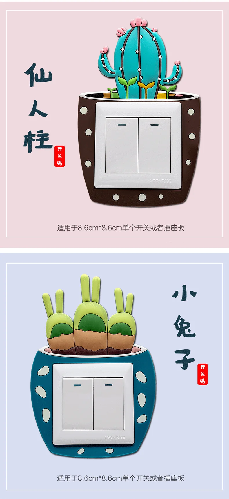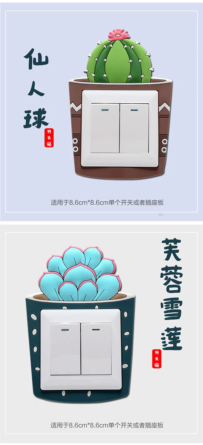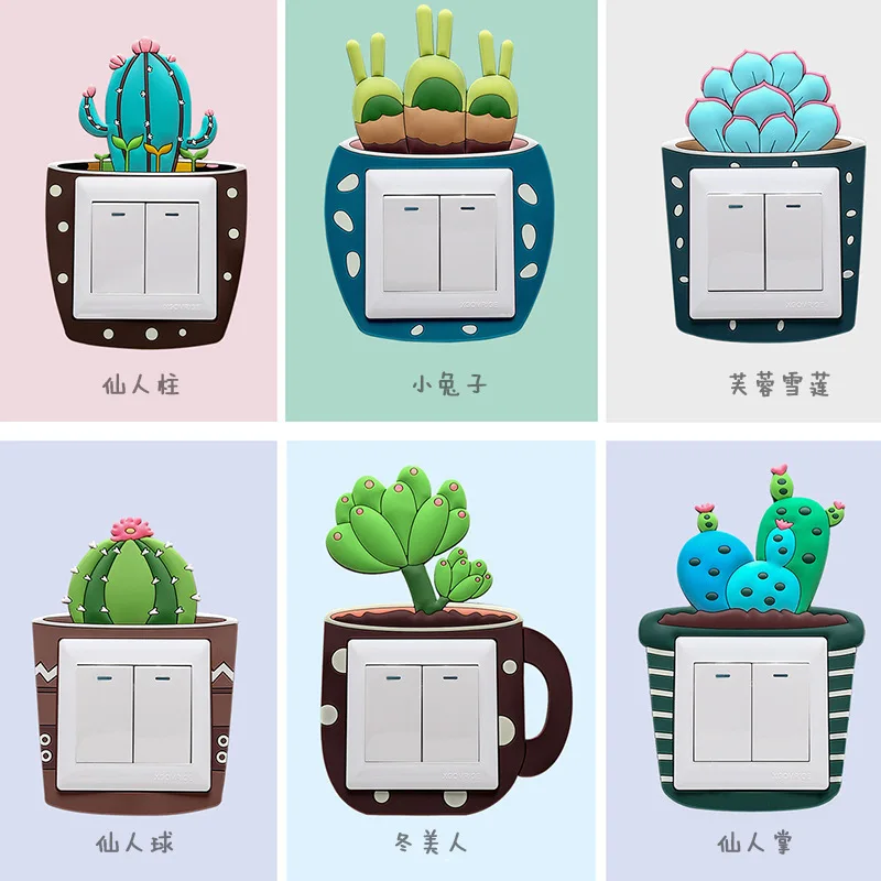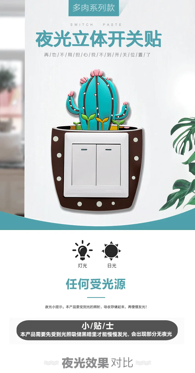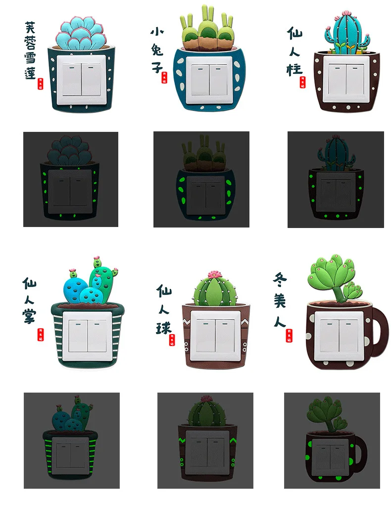 Стикеры для переключателей, мягкие светящиеся наклейки для дома, гостиной, спальни, моющиеся, креативные Мультяшные наклейки-кактусы