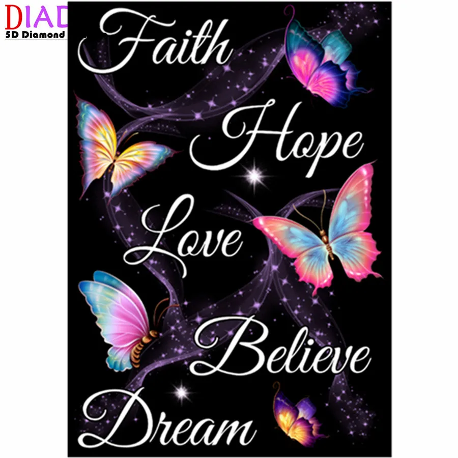 Алмазная 5D картина сделай сам, мозаика с полными кругами, цветами, бабочками, английскими словами, украшение для дома
