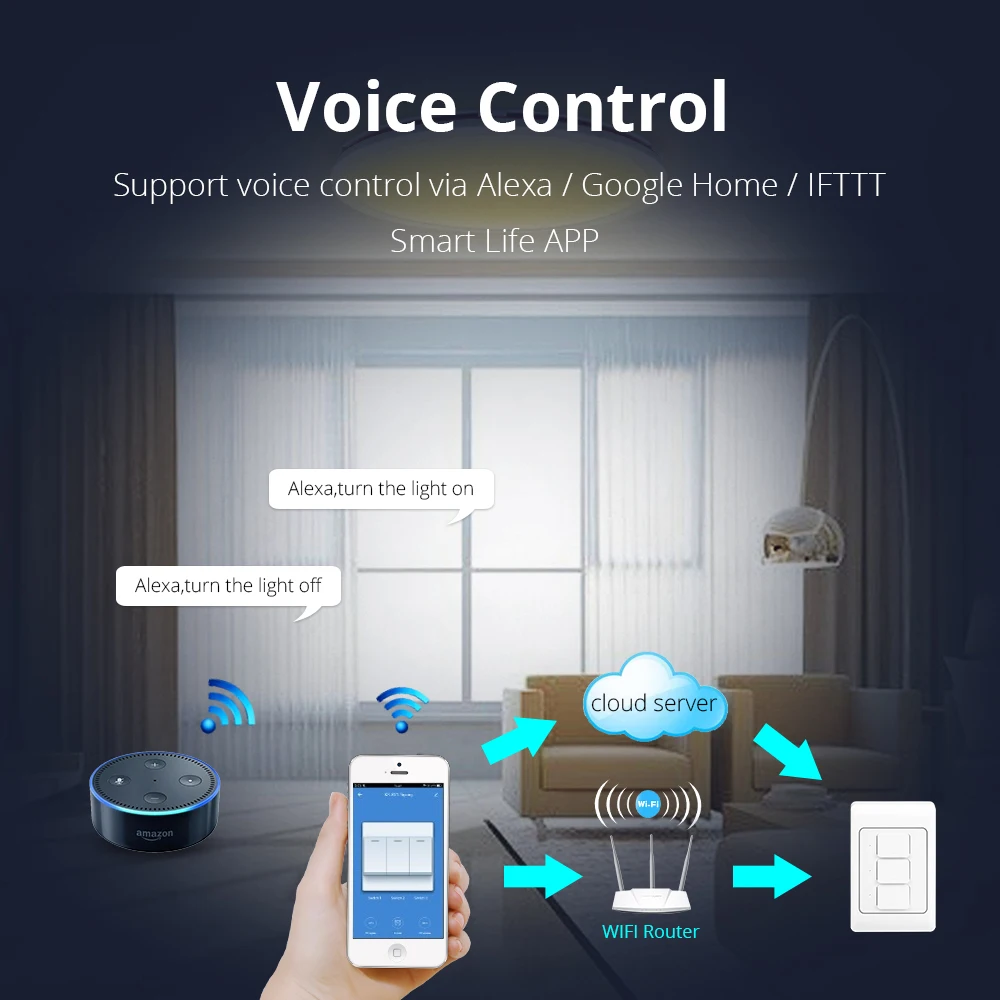 Умный выключатель света для Amazon Alexa и Google Home активирует кнопку ВКЛ/ВЫКЛ с помощью голосовых команд, что упрощает жизнь.