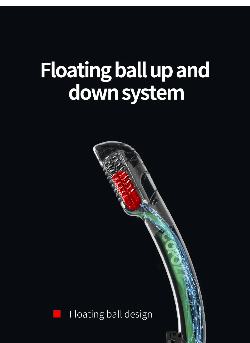 Когда вы погружаетесь в воду, верхний клапан автоматически закрывает трубку. Поэтому никакая вода не попадает в трубку для подводного плавания и не вызывает удушения, соленой воды и паники. Нижний клапан также предотвращает попадание воды снизу и очистку. Легкое дыхание во время плавания на коленях.