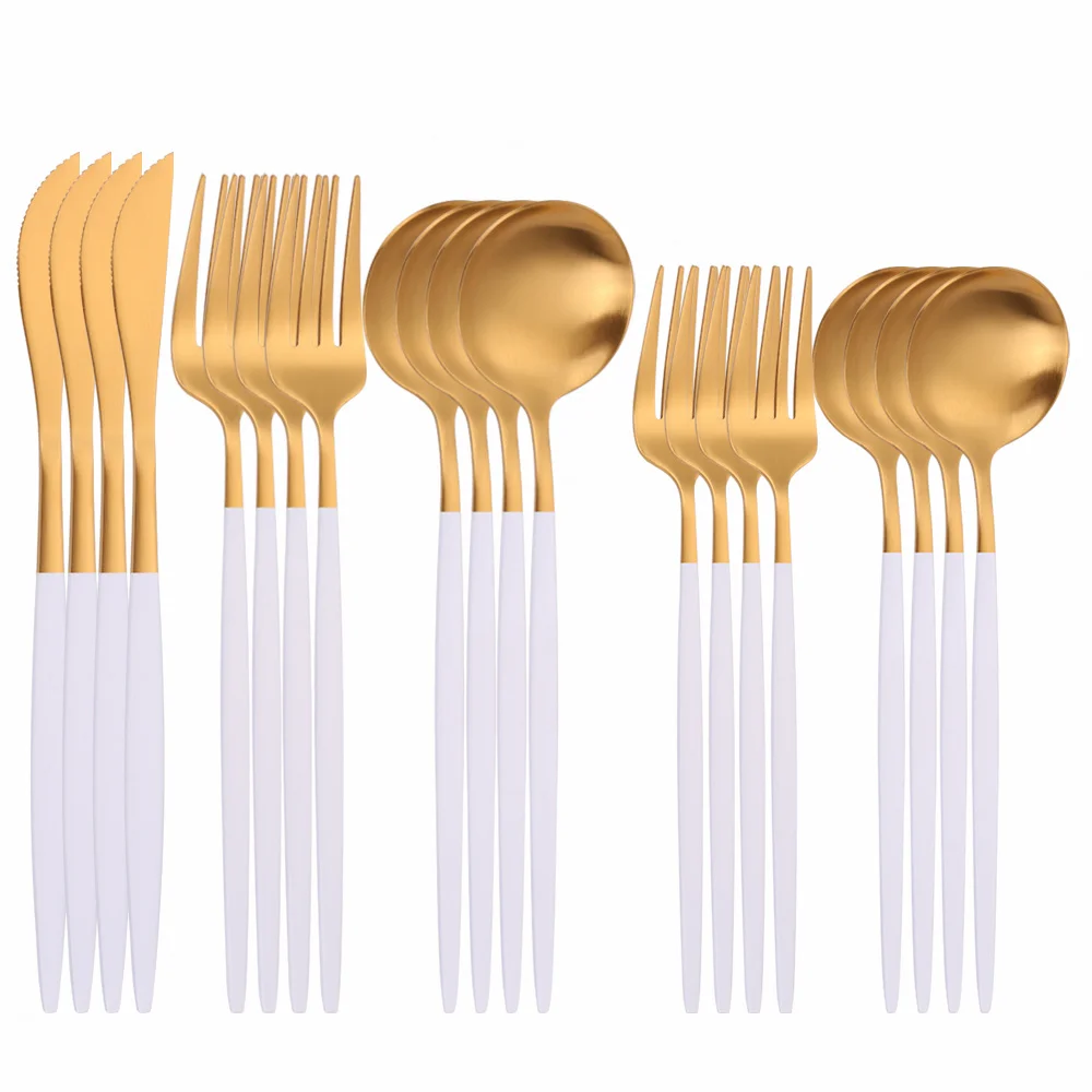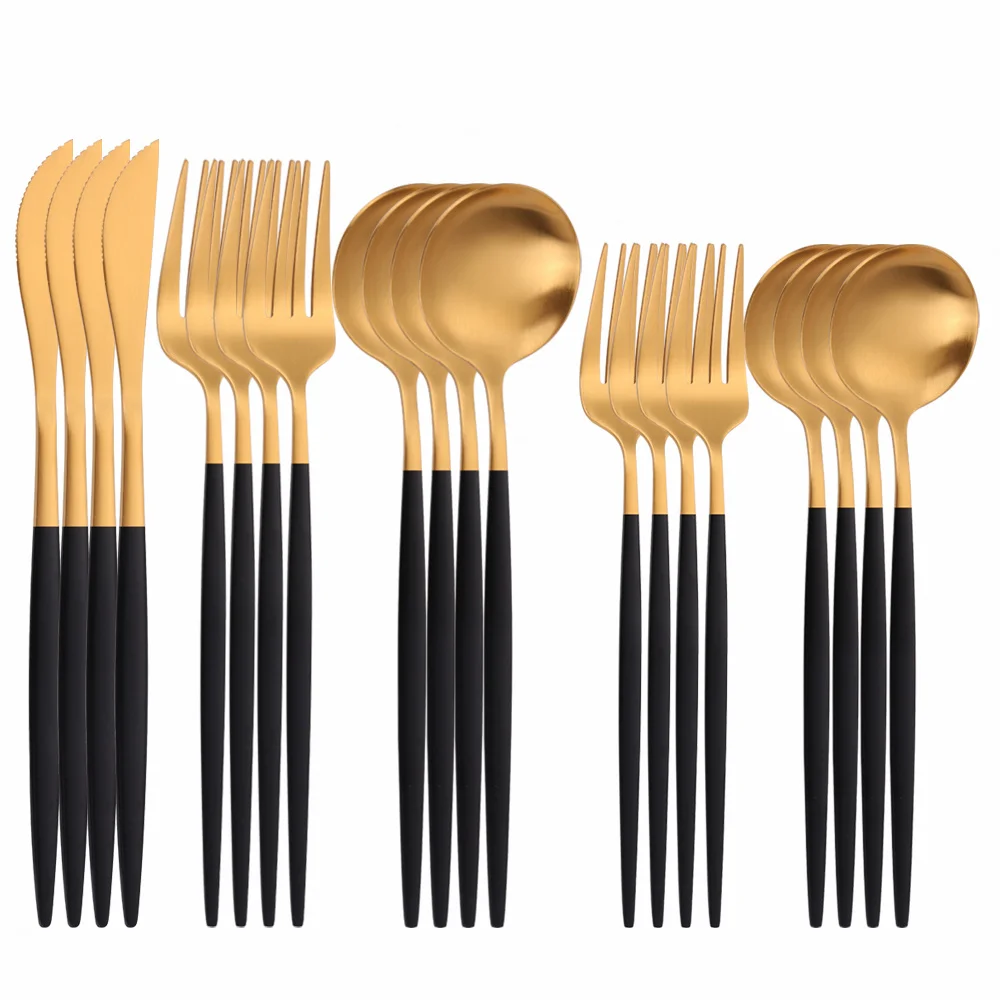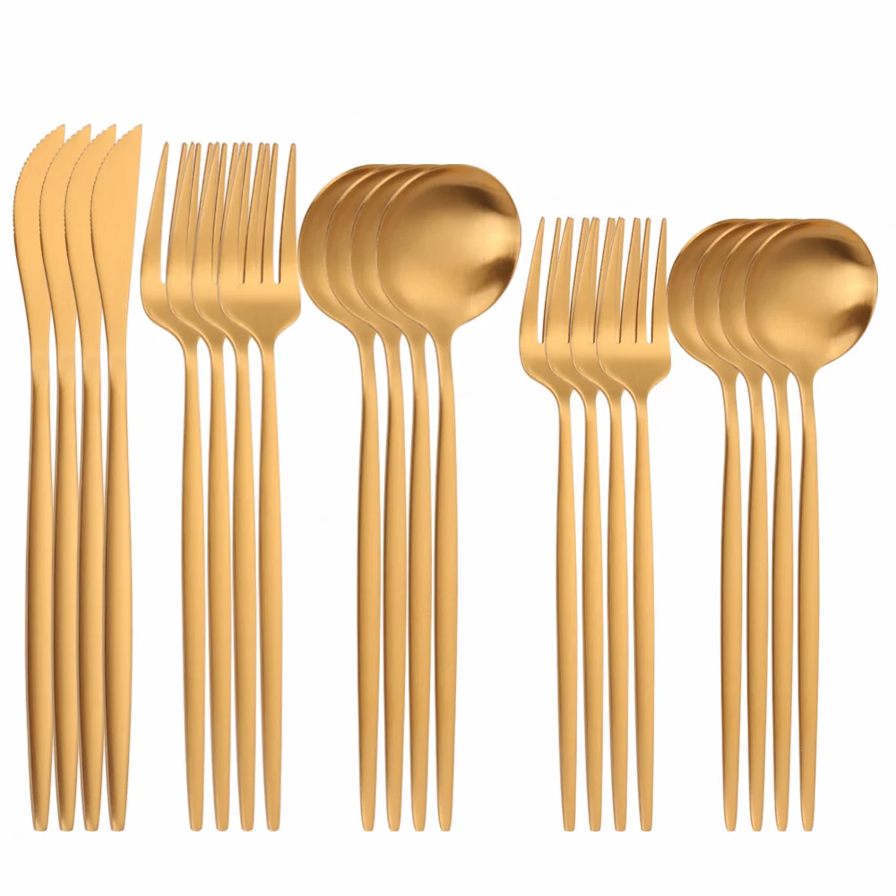 Набор золотых столовых приборов из матовой нержавеющей стали, 20 шт., набор золотых столовых приборов, нож ложка Вилка для обеда, кухонная посуда