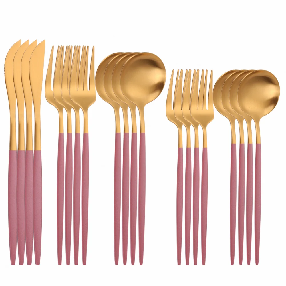 Набор золотых столовых приборов, комплект из 16 предметов, вилки, л...