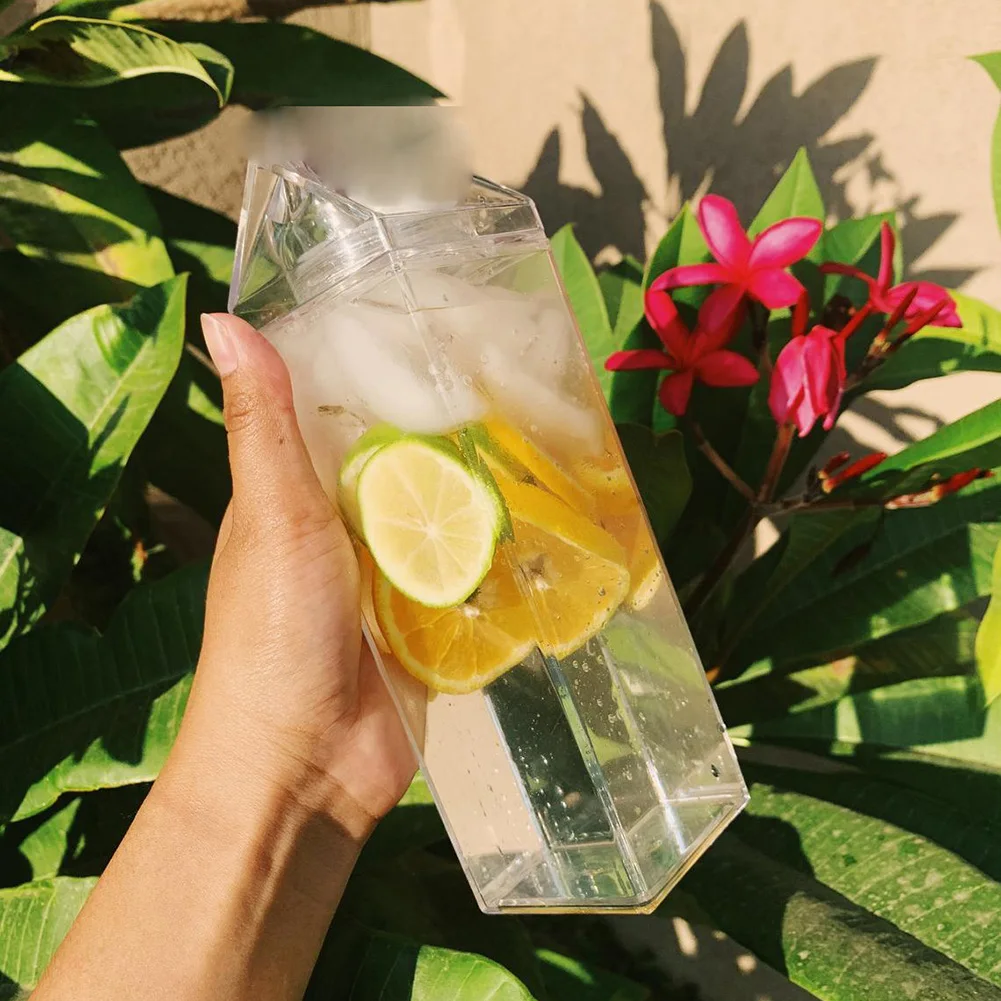 Бутылка для воды в молочной коробке 17 унций/34 унций девушка VSCO BPA бесплатно пластиковые прозрачные квадратные коробки для женщин 2 шт с 50 шт наклейками