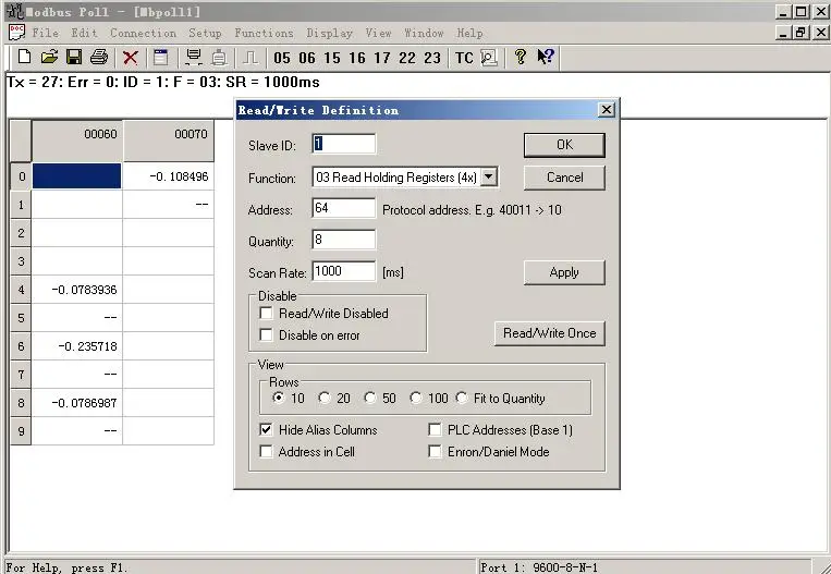 Modscan32Регистр тестовых точек