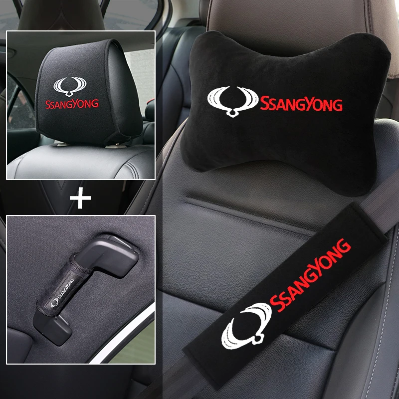 Новый набор на шею для автомобиля подушки крышка подголовника автомобиля автомобильный ремень безопасности Ручка Чехлы для Ssangyong kyron rexton, korando стайлинга автомобилей