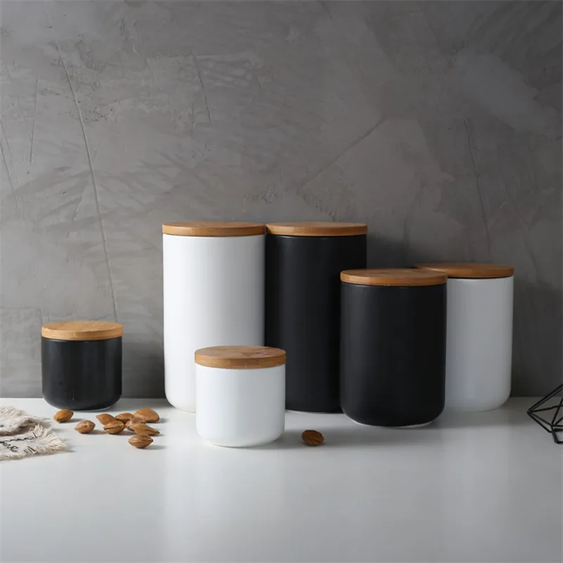 Нордическая кухонная белая черная стандартная банка для хранения, контейнер для специй, бутылка для хранения соли с деревянной крышкой, банка для кофе и чая