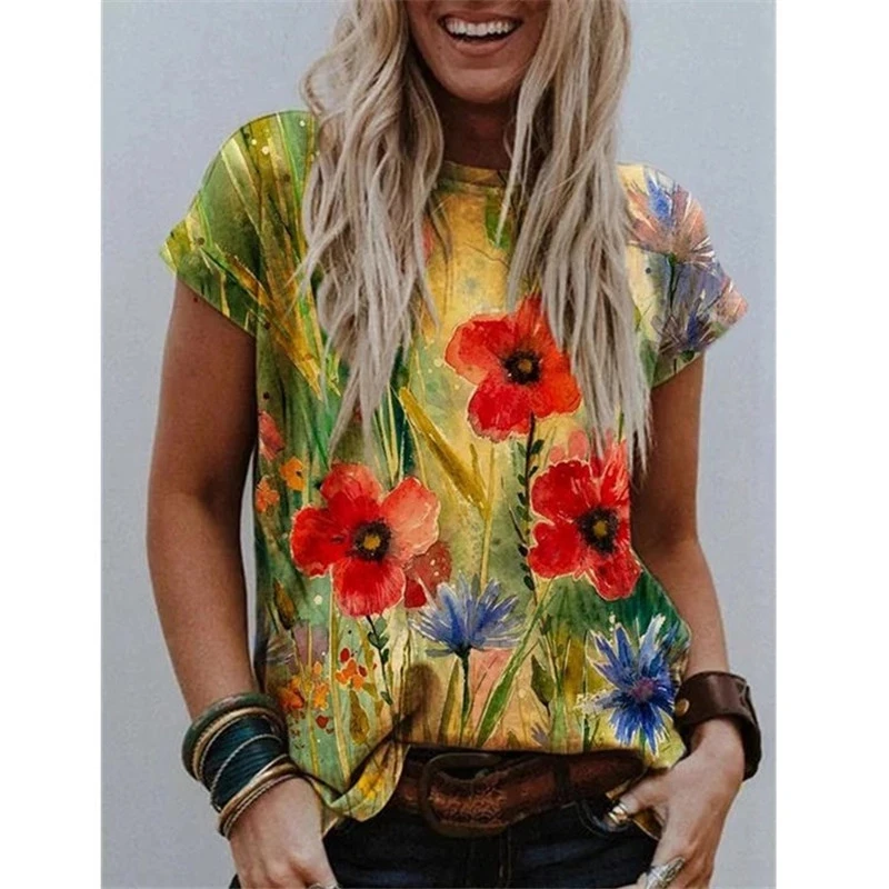 Новинка 2021, женская футболка в стиле бохо с 3D цветочным принтом,...