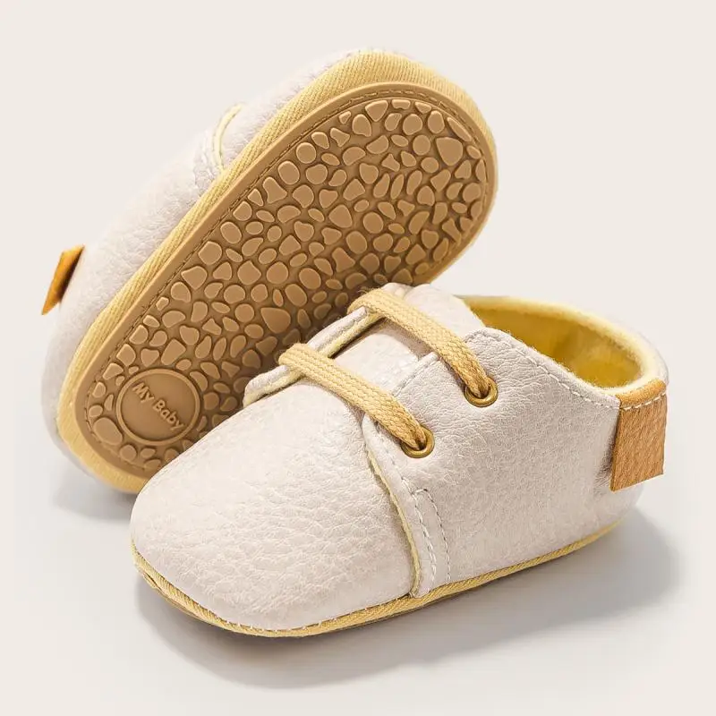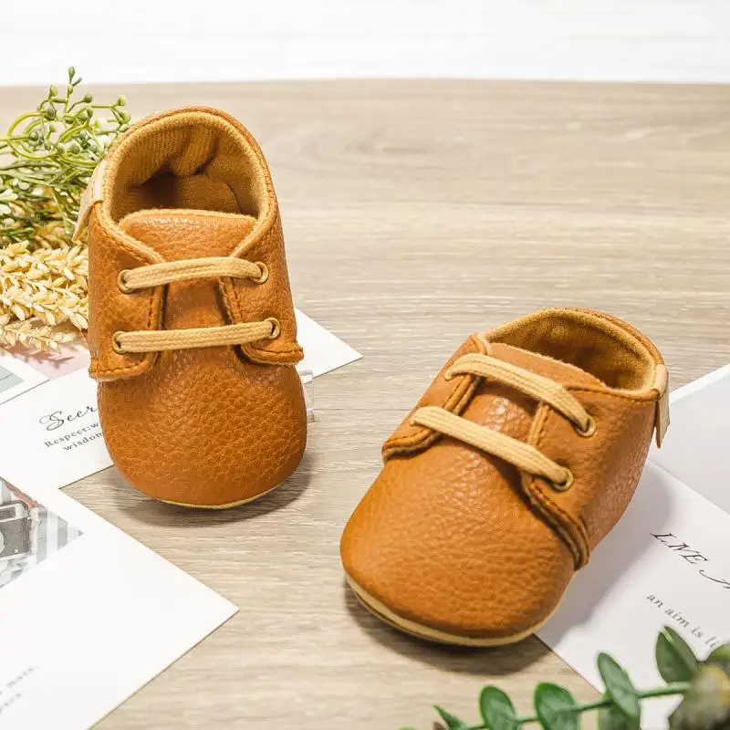 Ботинки KIDSUN для новорожденных, простая модная повседневная кожаная нескользящая обувь на плоской резиновой подошве для маленьких мальчиков