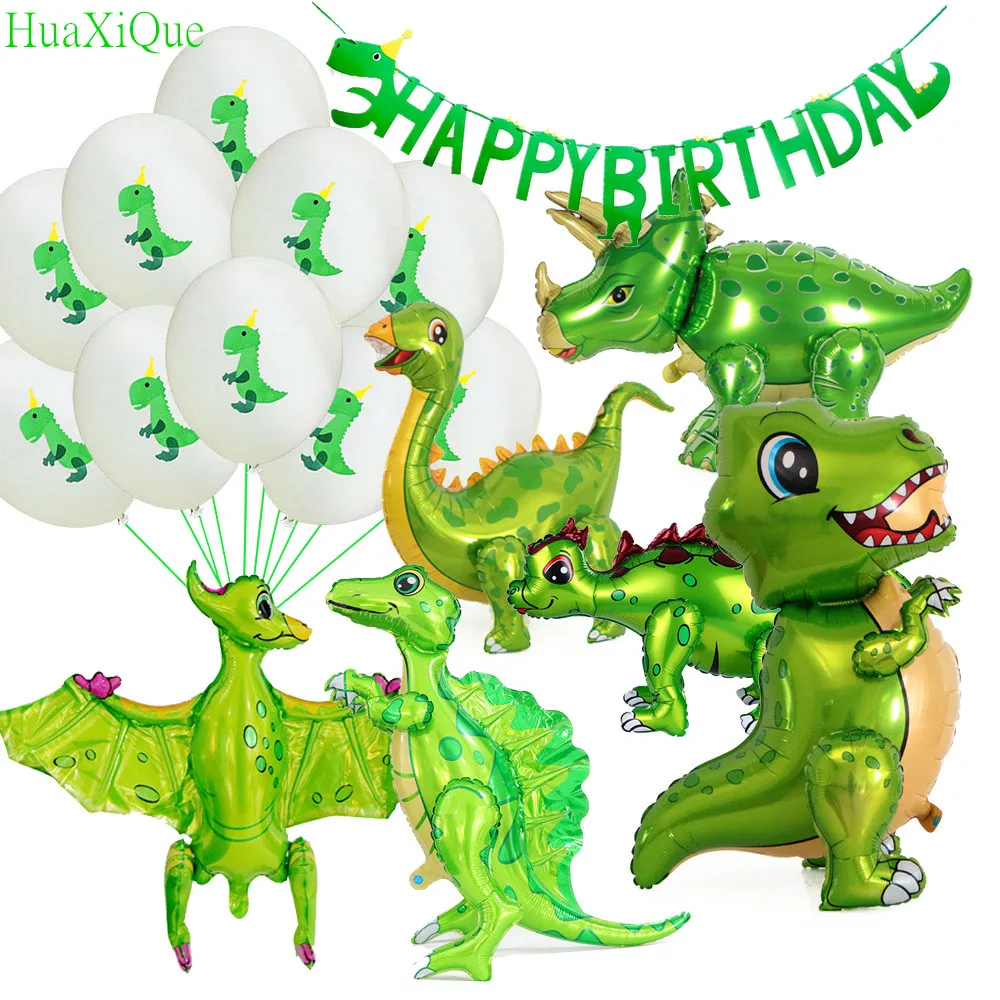 Стоящий в тайском стиле с зеленым динозавром, Фольга воздушные шары 3th на день рождения динозавра на капюшоне для вечерние Шары Баннер с изображением животных из джунглей часть Globos
