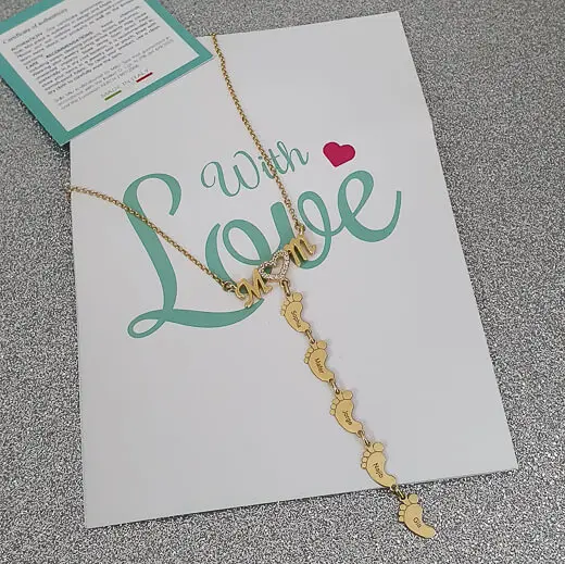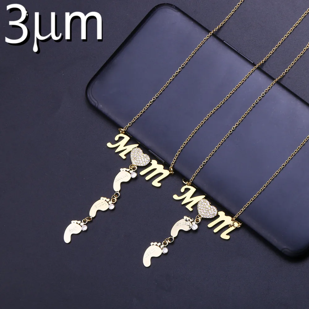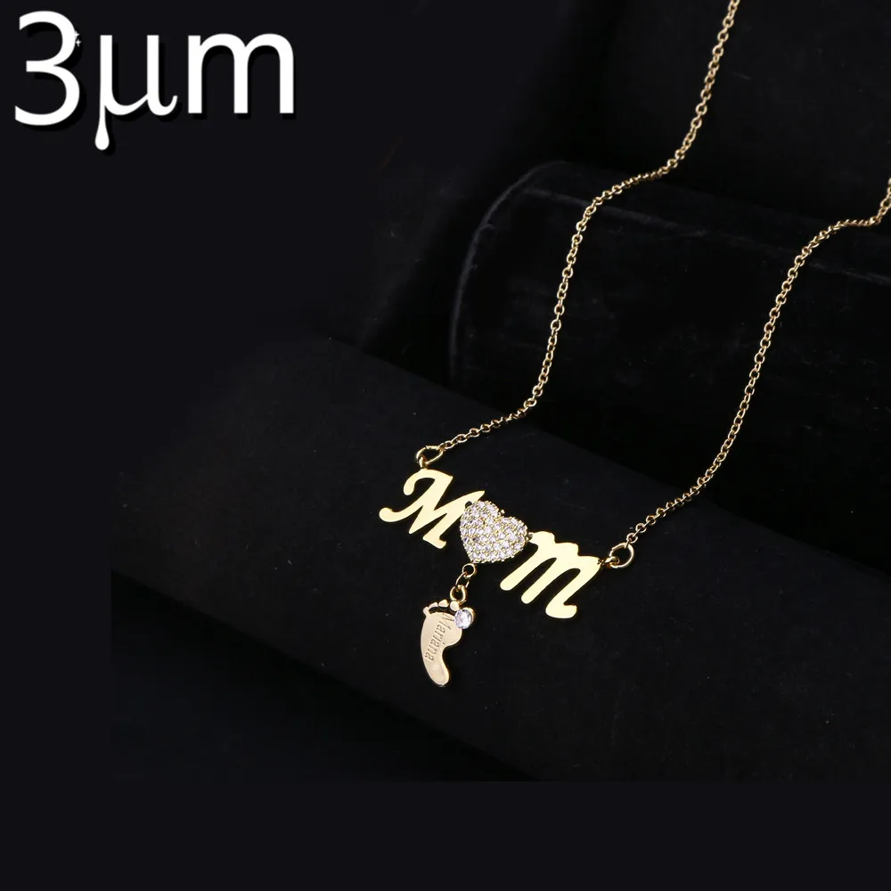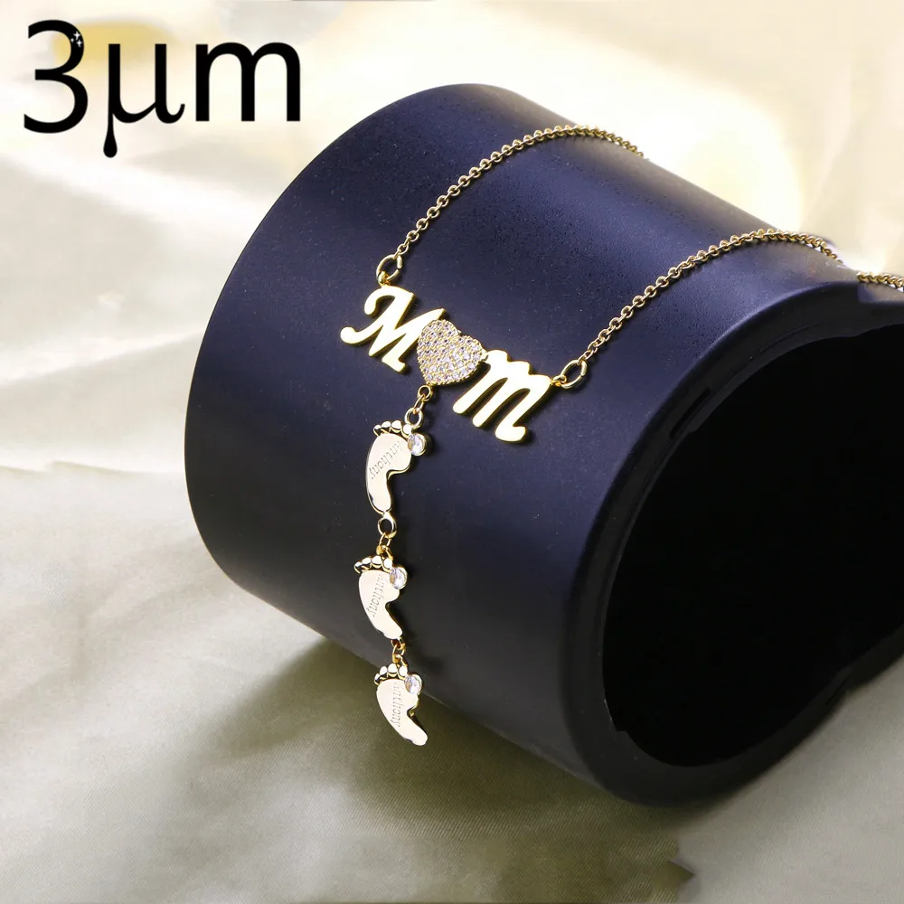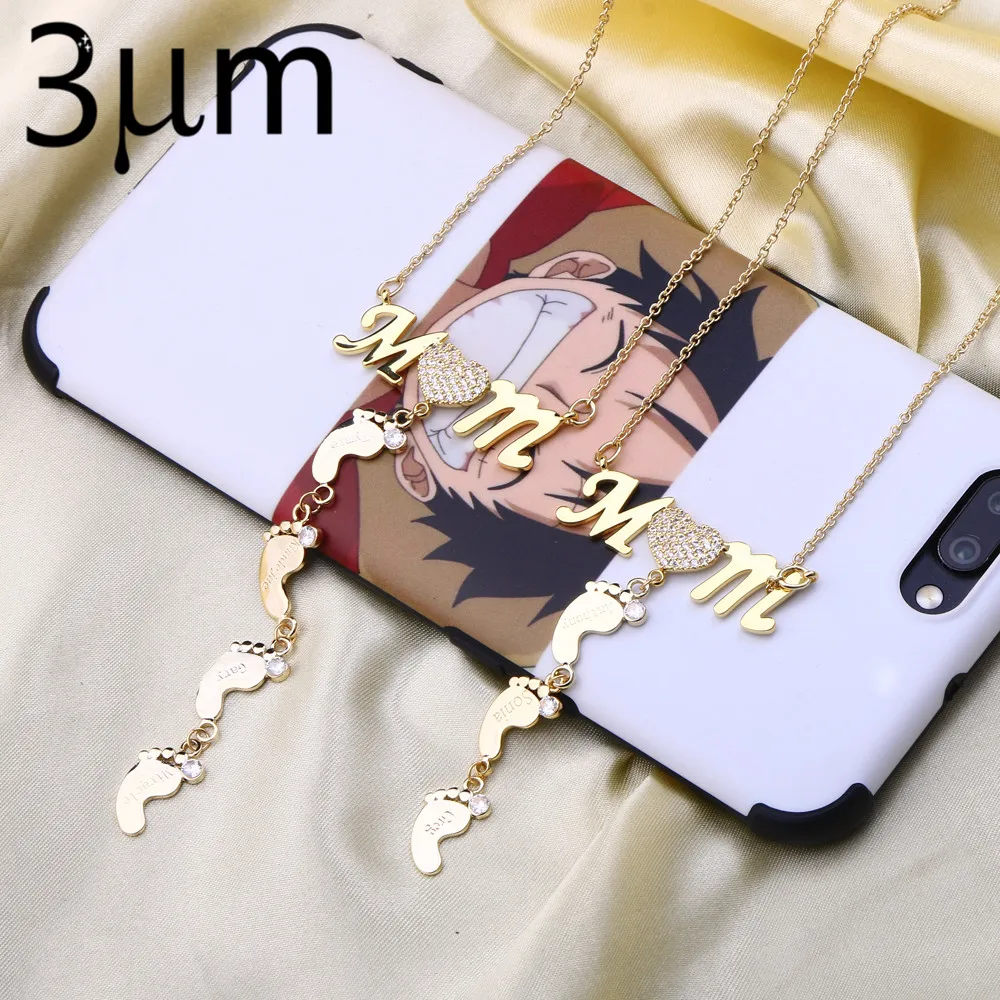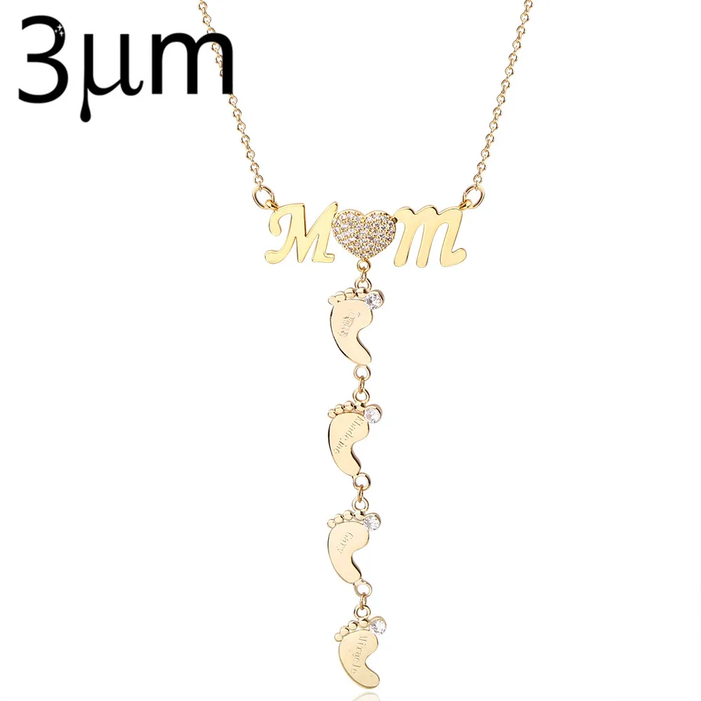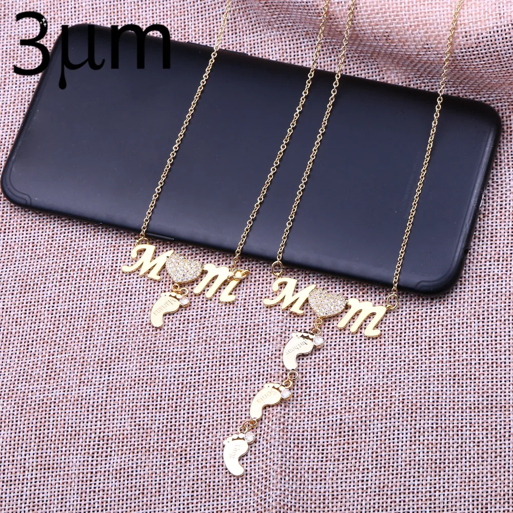 Ожерелье с именем мамы, 3 метра, кулон, ожерелье с фианитами, индивидуальная инкрустация, ожерелье с детскими ножками