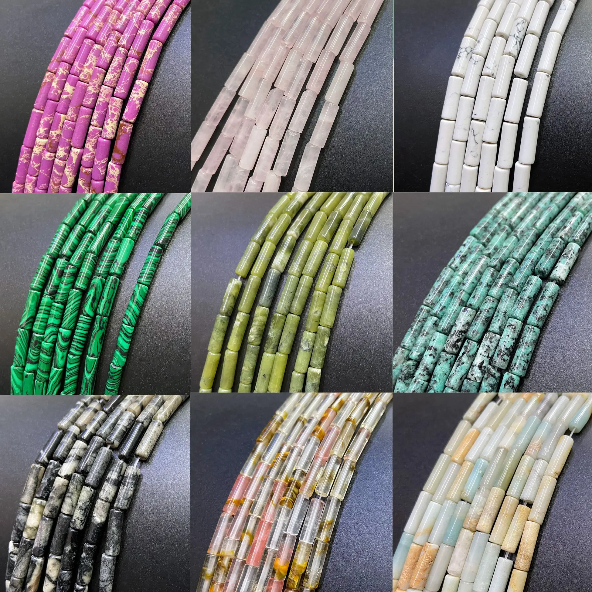 Цилиндрические бусины-колонки из натурального камня, 4 х13 мм