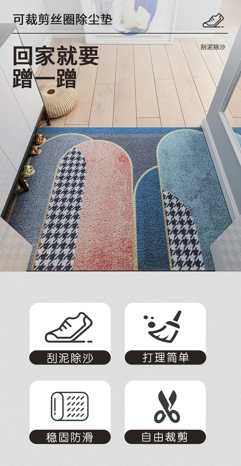 > Этот продукт может быть настроен в соответствии с размером входа, пожалуйста, свяжитесь с нами, если вам нужно настроить. > Он изготовлен из экологически чистого материала и безвреден для людей. > Подошва изготовлена из противоскользящего материала, чтобы предотвратить скольжение коврика и защитить вашу безопасность, верхний материал может поглощать влагу от обуви, чтобы сделать полы чистыми и сухими, также удалите пыль, грязь, снег и т. д. > Его можно свободно разрезать на любые формы, которые вы хотите, и он подходит для внутреннего и наружного входа, прихожей, гостиной, спальни, ванной комнаты и т. д. > Толщина составляет около 8 мм, он может полностью лежать на полу и не будет мешать открыванию и закрытию двери. > Когда он заполнен частицами грязи, вы можете просто очистить его с помощью пылесоса, или вы можете использовать садовый шланг в краску, а затем позволить ему полностью высохнуть на воздухе перед следующим использованием.