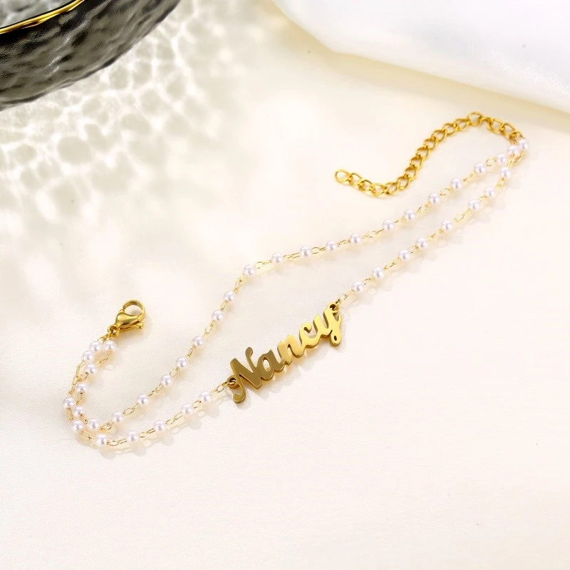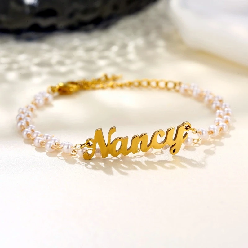 Регулируемый браслет из нержавеющей стали, с именем браслеты из искусственного жемчуга, для пар и женщин
