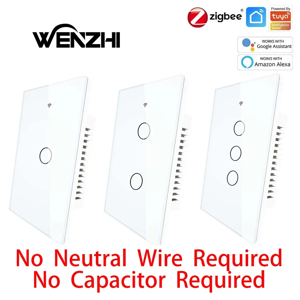 Настенный сенсорный переключатель ZigBee, США, белый светильник, без нейтрального конденсатора, Smart LifeTuya, дистанционное управление через приложение, Alexa, Google Home, 23 каналов