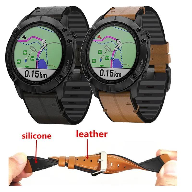 Ремешок из силикона и кожи для Garmin Fenix 5 5 PlusFenix 6 6 Pro, ...