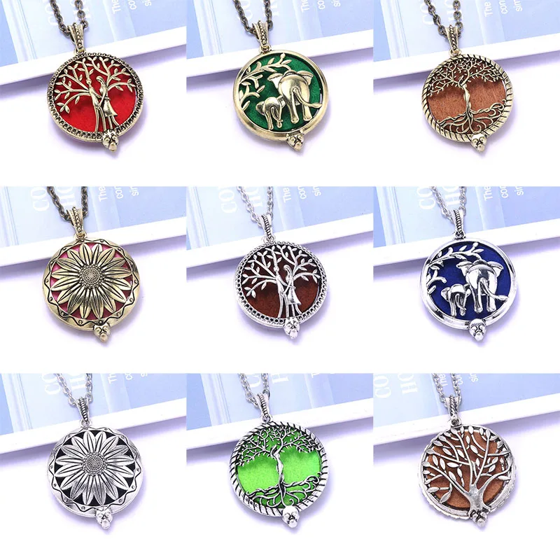 Ожерелье с ароматерапией древо жизни Ювелирные изделия с диффузором винтажный открытый медальон Подвеска Ароматический диффузор для эфирных масел ожерелье