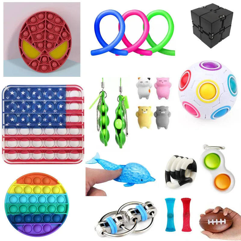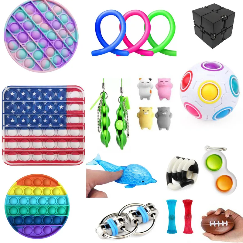 Набор игрушек-фиджет для снятия стресса, Волшебный мини-куб Infinity, простой Сжимаемый фиджет-фиджет в форме горошина, мягкие лапши, струны