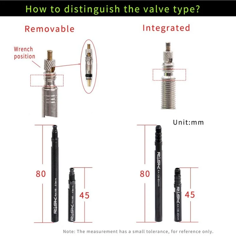 Название: RISK Presta Vavle Extender бренд: RISK Материал: алюминий aly Использование: Extension presta vave Размер 1:Integrated-45mm/80 мм Размер 2:Removable-45mm/80 мм вес 1:Integrated-45mm 1 комплект 10,47 г вес 2: integrated-80mm 1 комплект 16,15g Weight3:Removable-45mm 1 комплект 7,2g Weight4:Removable-80mm 1 комплект 10g Weight5: съемный или однотрубки уплотнительное кольцо 100 шт./пакет 2,54 г посылка: Пластик коробка