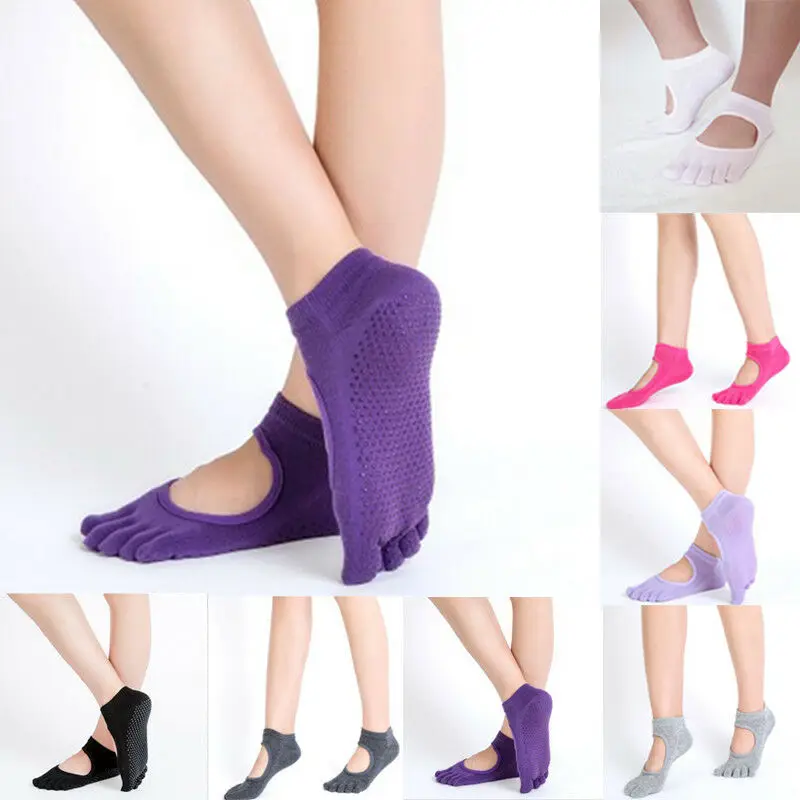 Для женщин Йога носки с пятью пальцами анти-скольжения по лодыжку д...