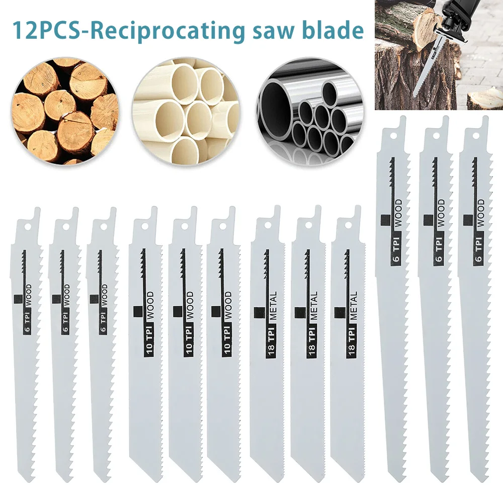 12 шт. лезвия для сабельной пилы, Сабельная пила, ручная пила, многопильный диск для резки дерева, металла, ПВХ трубки, электроинструменты, аксессуары