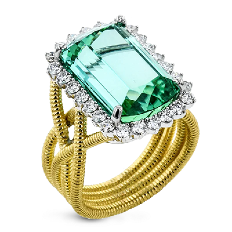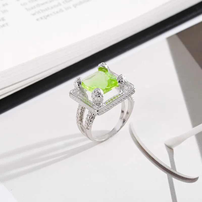 Модное женское кольцо Стразы с зеленым и белым кристаллом в виде ми...