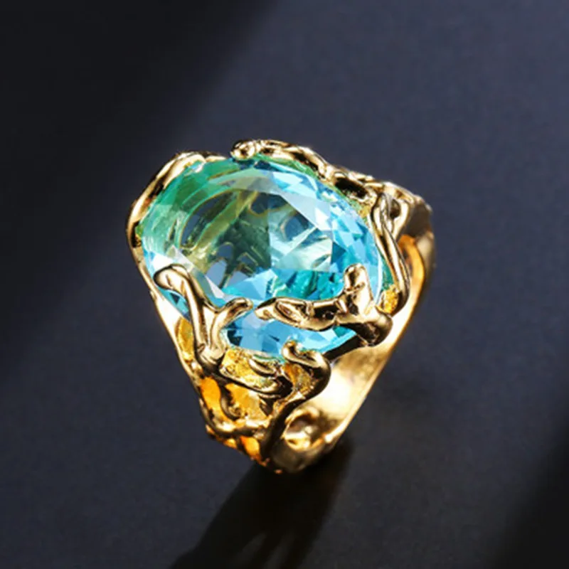 Классическое кольцо Морской голубой кристалл для женщин, европейски...
