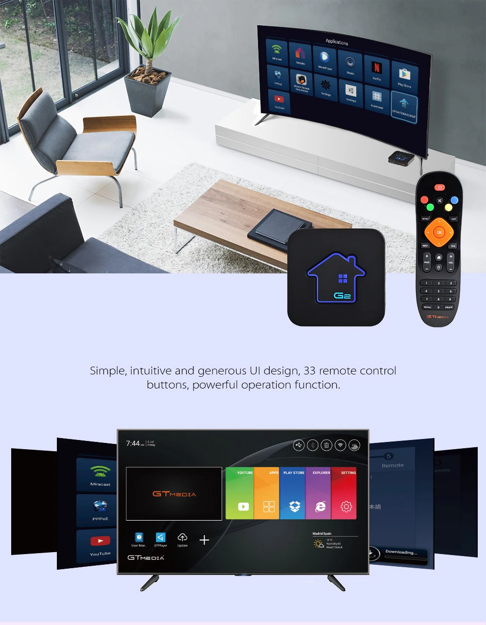 ТВ-приставка GT MEDIA G2 4K на Android 7.1.2, четырехъядерный проце...