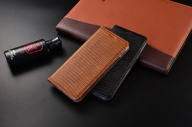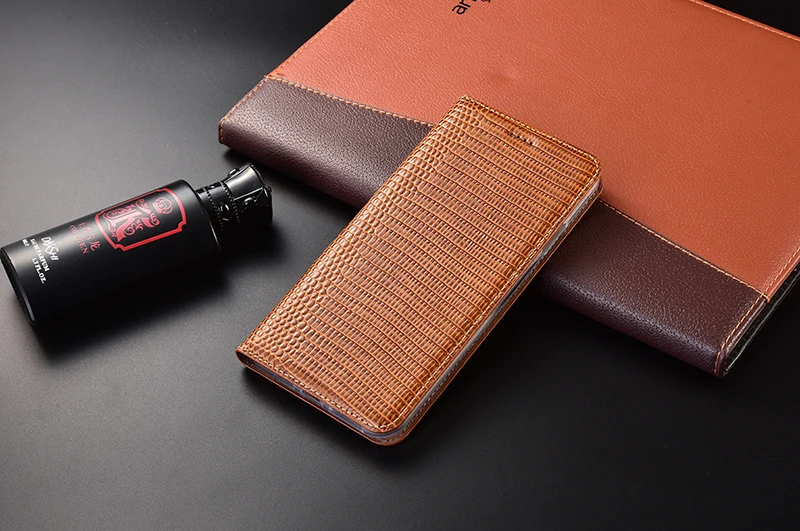 Роскошный чехол-книжка из натуральной кожи с изображением ящерицы, ...
