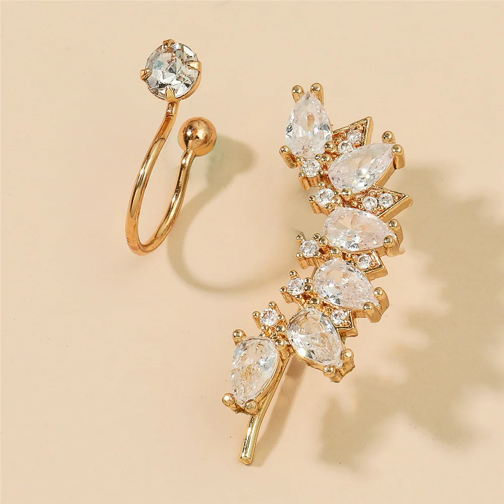 Набор клипс для ушей с цирконом, звездой, цветком, простыми листьям...