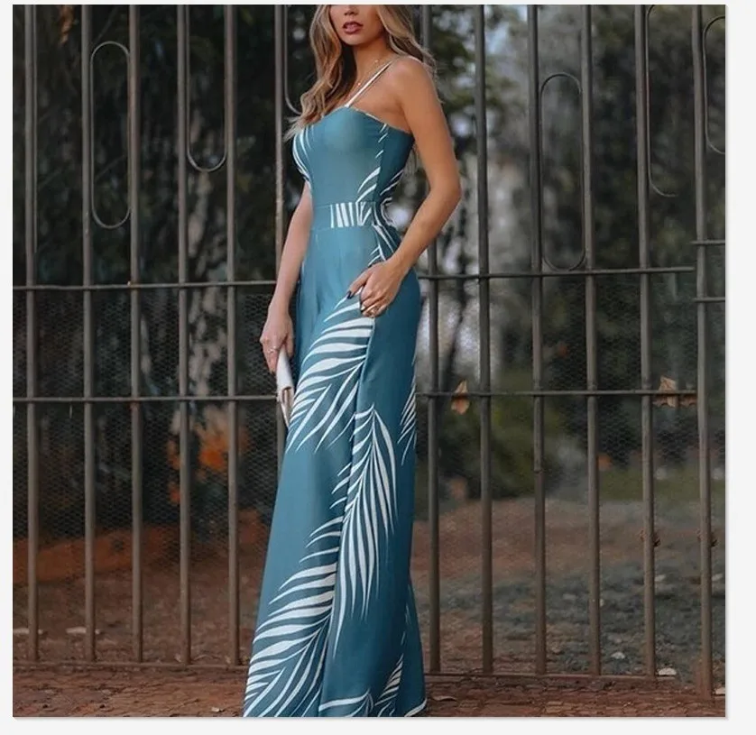 Женский комбинезон на бретелях, с принтом листьев, без рукавов, с открытой спиной, с карманами, 2021