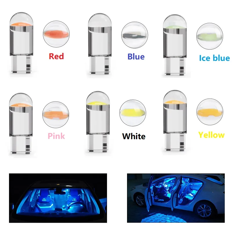 2/10 шт. супер яркий W5W 194 T10 светодиодный Стекло Корпус по технологии Cob лампы 6000K белый зеленый синий и красный цвета на танкетке фонарь освещения номерного знака купольный светильник