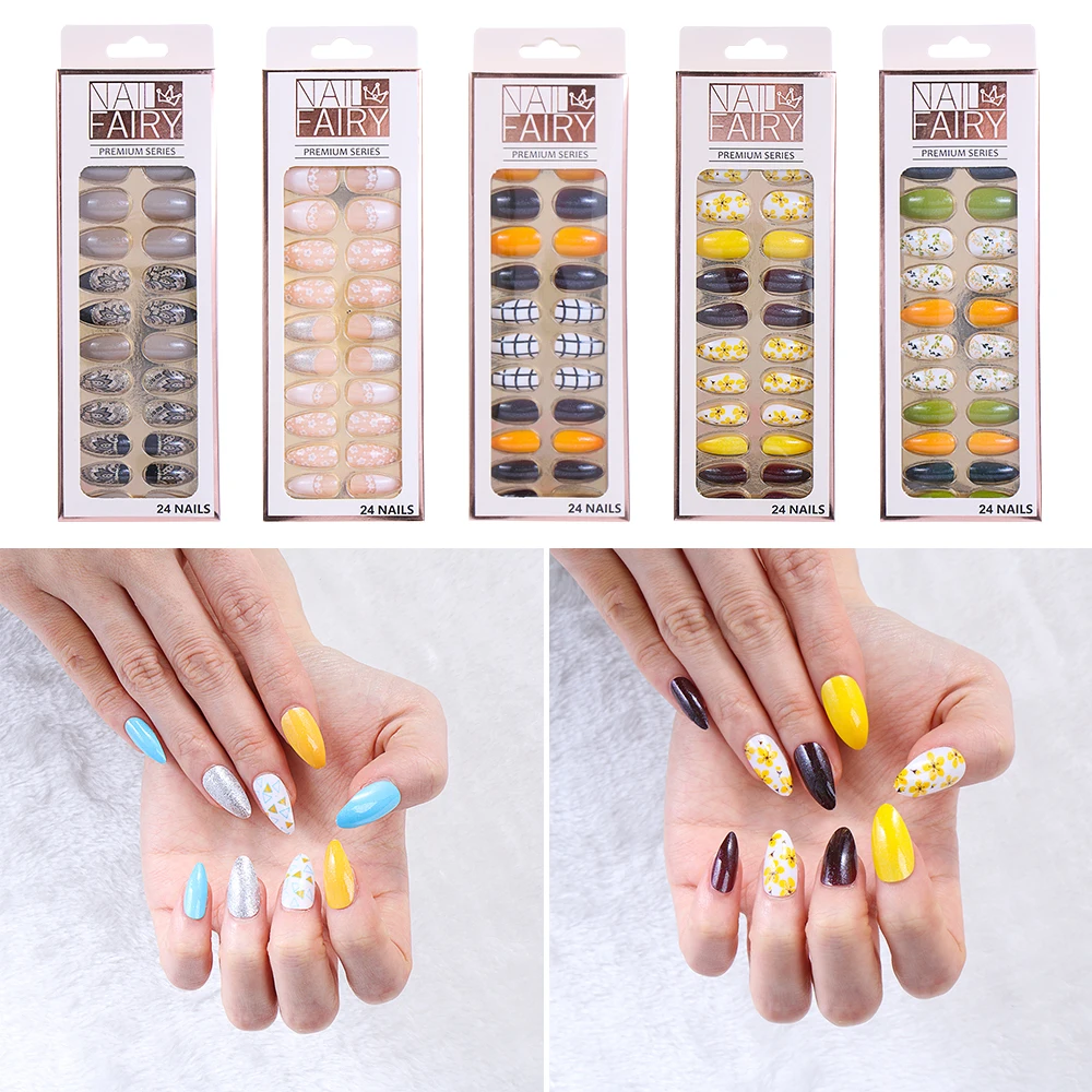 24 шт. носимых стилет накладные ногти Модные полное покрытие накладные ногти для ног, нажмите на ногти рукоделие Маникюр Красота Инструмент с пресс клей
