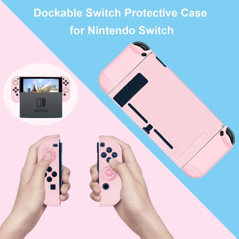 ❤Теплый Розовый чехол для док-станции-Защитите ваш переключатель с помощью легкого, гладкого и ударопрочного чехол! Чехол Joy-con изготовлен из поликарбоната, который имеет превосходное гладкое ощущение руки. Он подходит для док-станции и не добавит лишнего размера или веса. Профессиональный дизайн идеально сочетается с вашим переключателем, и все кнопки отпускания очень легко получить.
