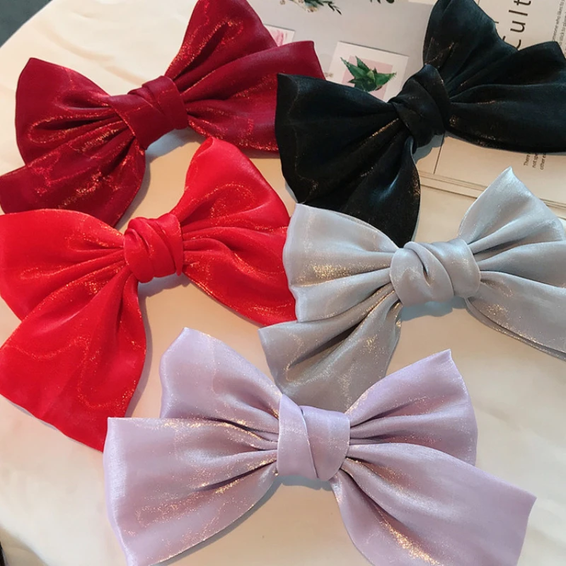Заколка для волос с большим бантом женская, однотонный зажим с русалочкой, милый атласный аксессуар на голову, весна