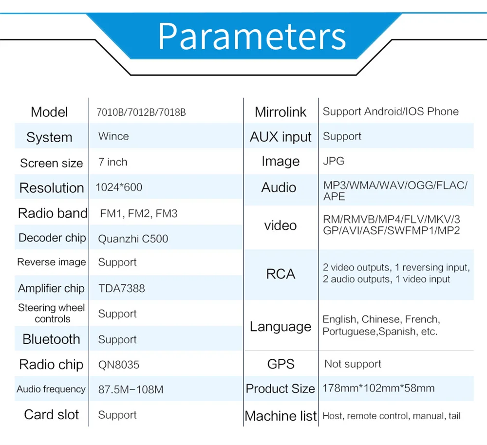 Поддержка аудиоформата: MP3/WMA/WAV/OGG/FLAC/APE