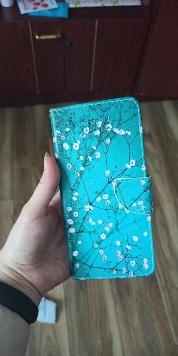 Подобный чехол заказываю не в первый раз,именно этот слишком широкий,верхняя часть чехла "ездит" по экрану телефона в руке,резинка держит телефон не плотно,а слегка за края,второй такой брать не буду.Магнитик на хлястике хороший,все отверстия под кнопки на месте,внешний вид соответствует картинке.С продавцом не общалась.